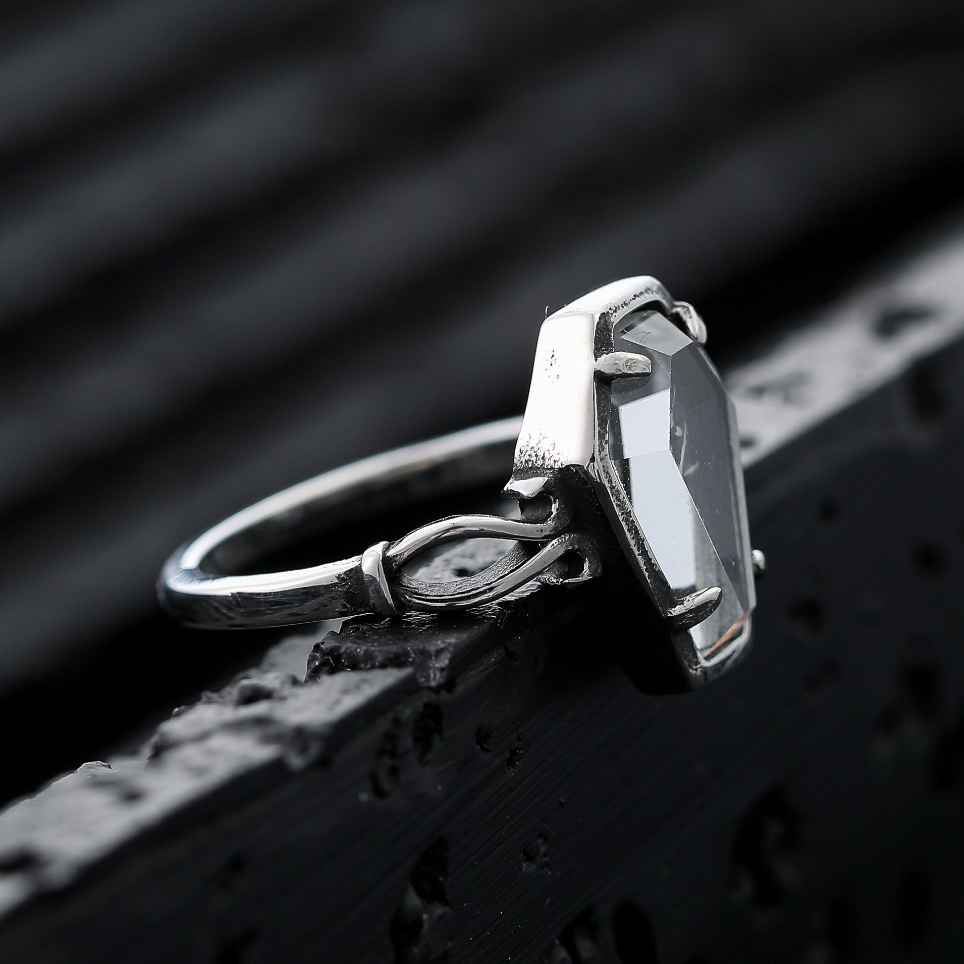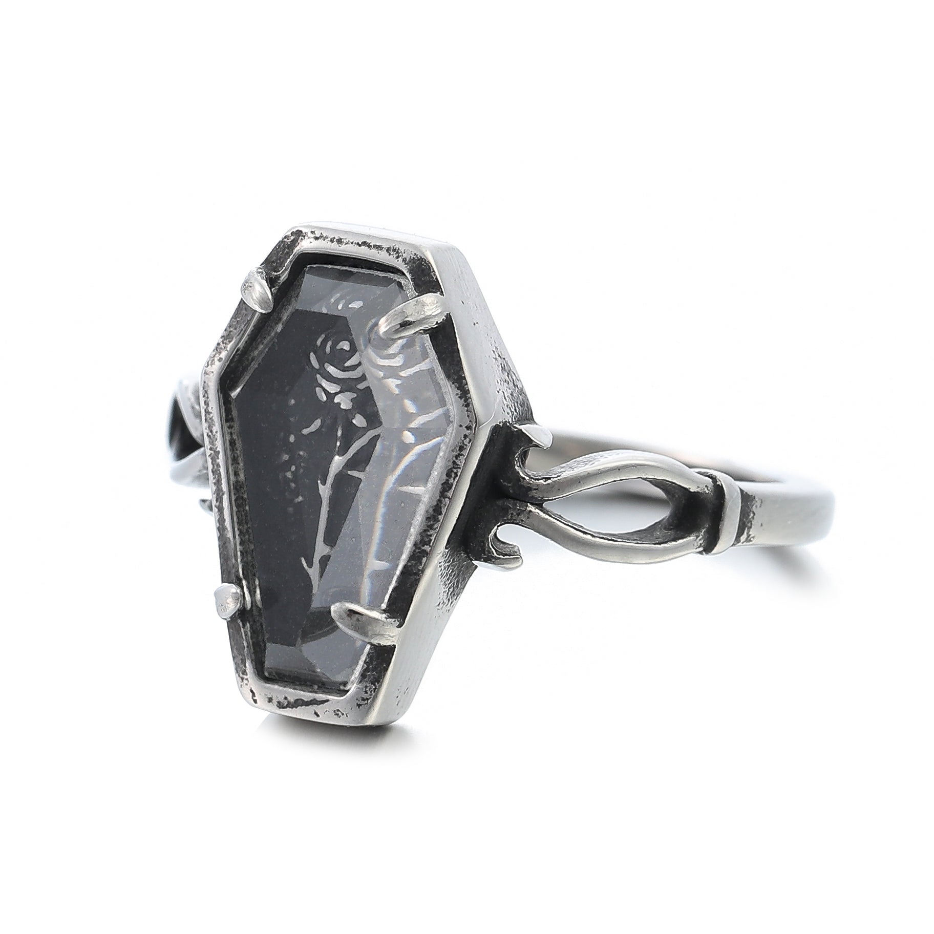 ZMY Home Coffin Rose Ring for Women, Gothic Silver Plated Vintage Punk Jewelry, Unique Memento Mori Gift