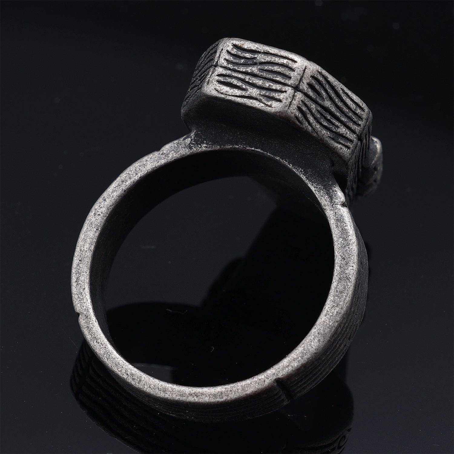 Antique silver look enhances depth and detail, giving the ring a rugged and edgy appearance.