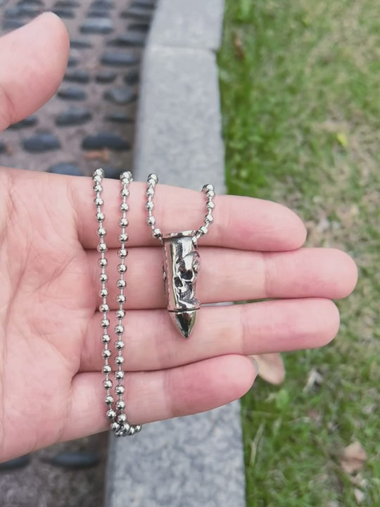 - Elevate your accessory game with the ZMY Home stainless steel bullet necklace, which boasts a unique bullet shape and a skull carving that's both rugged and refined. The durable stainless steel material ensures that this piece will last for years to come, while the fine craftsmanship ensures that it's a cut above the rest.
